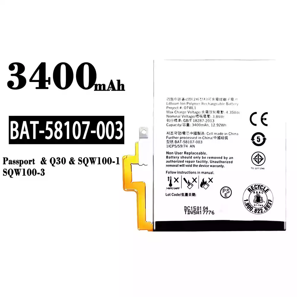 Nagelneuer Akku BAT-58107-003 für BlackBerry Passport/Q30/SQW100-1/SQW100-3