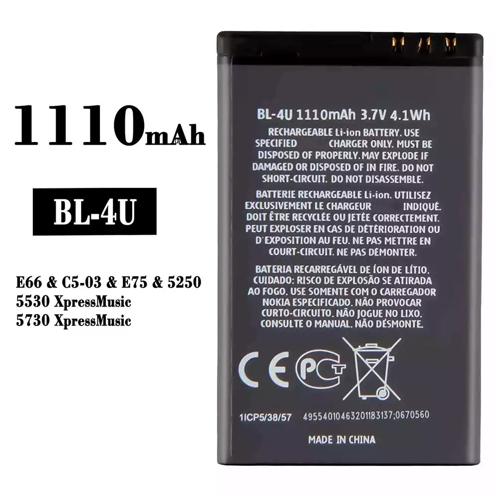 Akku BL-4U für Nokia E66 / C5-03 / E75 / 5250 / 5530 XpressMusic / 5730 XpressMusic