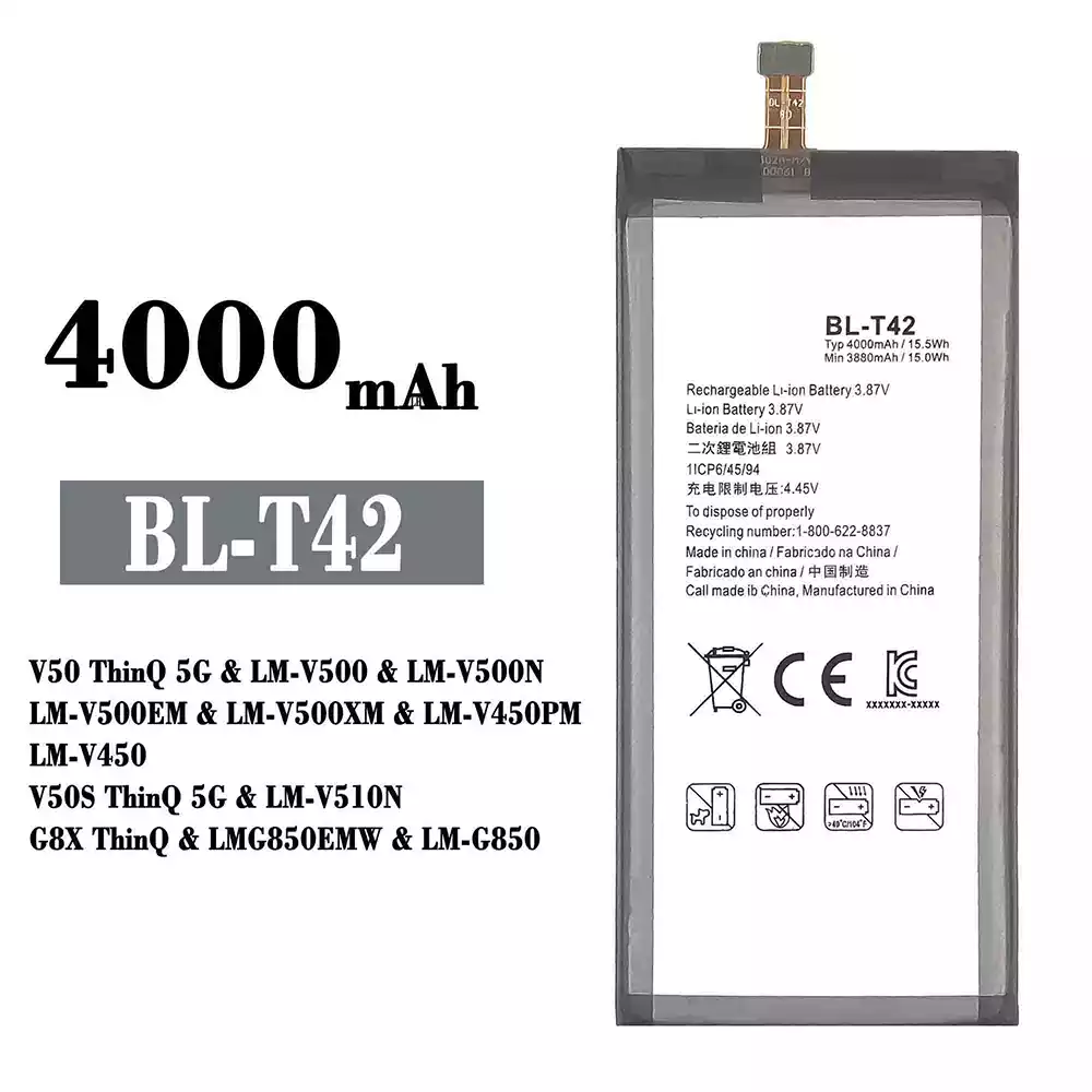 Akku BL-T42 für LG V50 ThinQ 5G / LM-V500 / LM-V500N / LM-V500EM / LM-V500XM / LM-V450PM / LM-V450 / V50S ThinQ 5G / LM-V510N / G8X ThinQ / LMG85OEMW / LM-G850