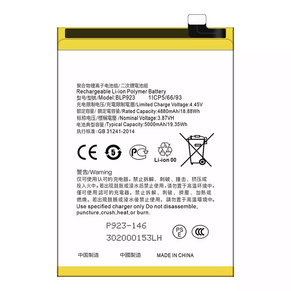 Akku BLP923 für OPPO A57 2020 /A57 4G 2022 /A57 2022 /A77 4G /A77 5G /A77s /A78 5G /A97 5G / K10 5G / OnePlus Nord N20 SE /OnePlus Nord N300 5G /Realme C51